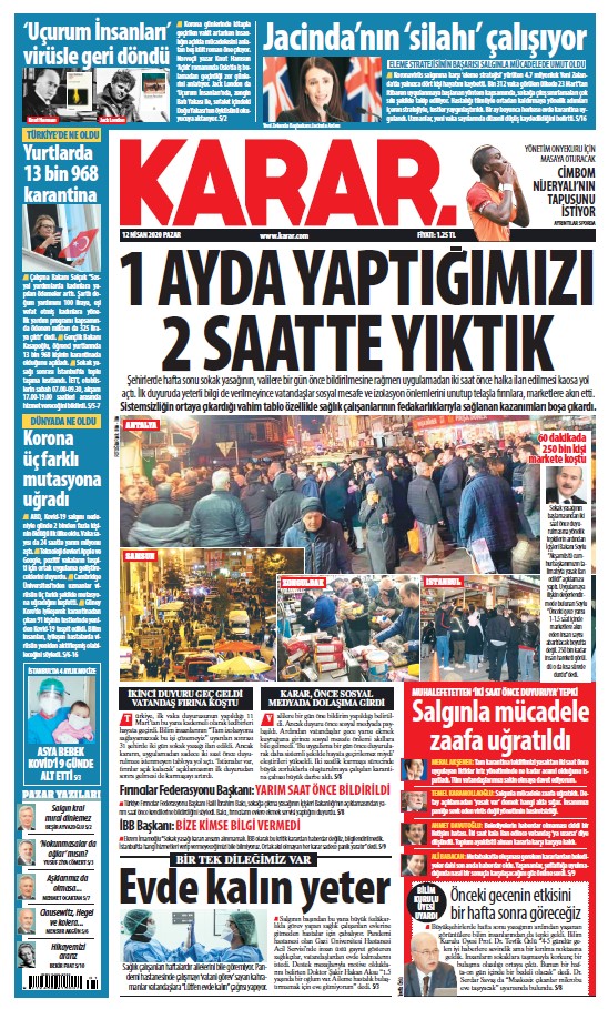 Türkiye, 11 Mart’ta başlayan salgınla mücadelede kritik süreçten geçerken, önceki gece 30 büyükşehir ve Zonguldak’ı kapsayan iki günlük sokağa çıkma yasağı ilan edildi. İçişleri Bakanlığı’nın valiliklere saat 21.50’de gönderdiği genelge sonrası yaşananlarla beraber bir aydır yapılan ‘sosyal mesafe’ çağrıları hiçe sayıldı. Sokağa çıkma yasağını duyan vatandaşlar kısa sürede içinde sokaklara döküldü, marketlere ve fırınlara hücum etti. Yaşanan endişe ve oluşan panik ortamı, virüsün daha da yayılacağı öngörülerini beraberinde getirdi. Genelgenin kapsamı ve detayları ise sokağa çıkma yasağından kısa süre sonra duyuruldu. Genelgenin kapsamında sağlık kuruluşları, eczaneler, fırın ve unlu mamül ruhsatlı iş yerleri, her 50 bin nüfusa bir adet olacak şekilde akaryakıt istasyonlarının açık olacağı belirtildi ancak bu açıklamadan habersiz binlerce vatandaş birçok kentte kuyruklara girdi ve alışveriş sıralarında izdiham oluştu, tartışmalar yaşandı. Bazı yerlerde polis ve bekçiler sokağa çıkma yasağının başladığı yönündeki anonslarıyla vatandaşlardan evlerine dönmelerini istedi. Devriye gezen polisler, megafonlardan fırınların ve eczanelerin açık kalacağını anons etti. Maske takmayan çok sayıda kişinin yasağın başladığı saat 24.00’e kadar sokaklarda olduğu görüldü.