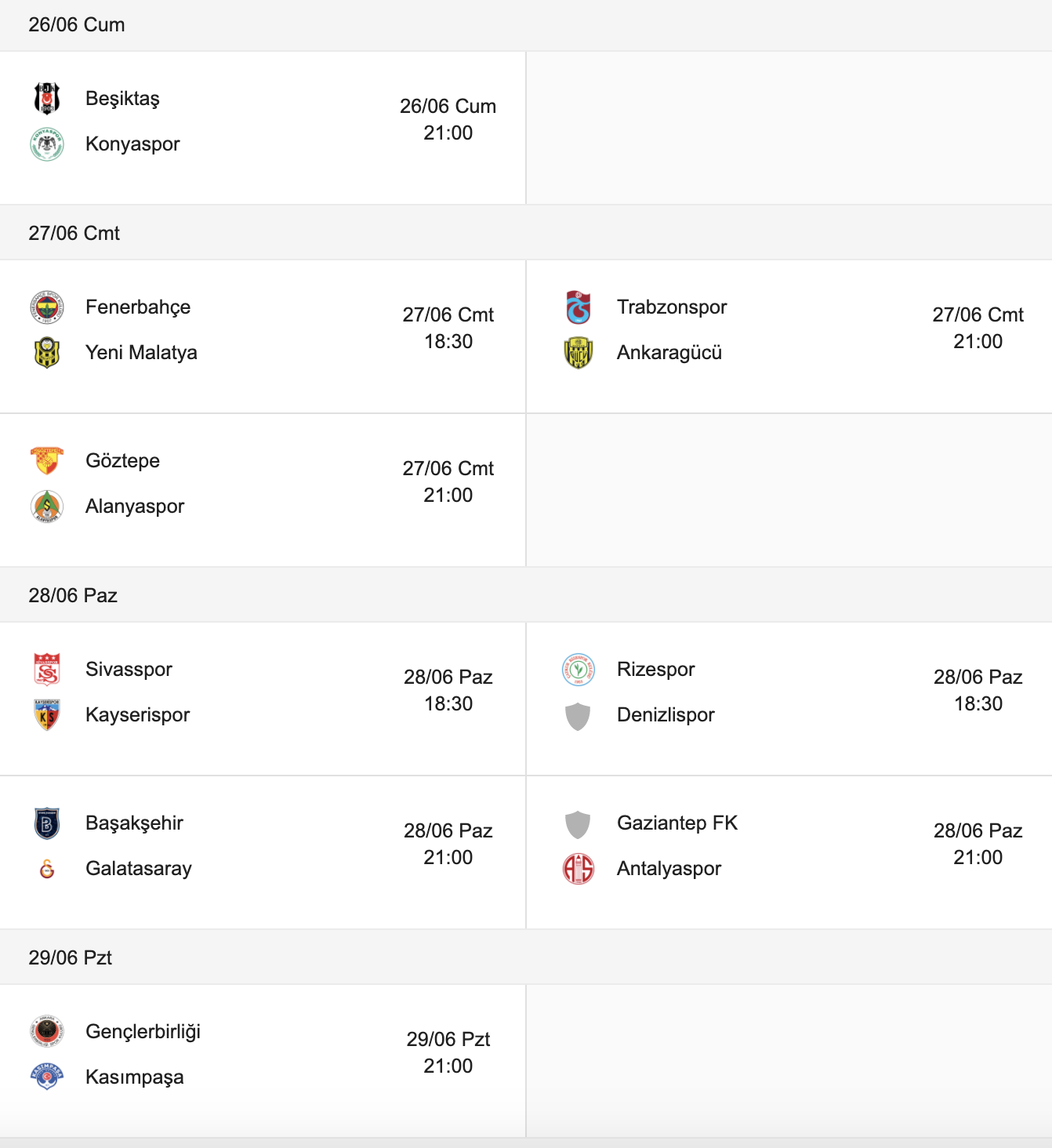 Pazartesi günü ve haftanın kapanış maçında ise Kasımpaşa, Gençlerbirliği deplasmanına konuk olacak.