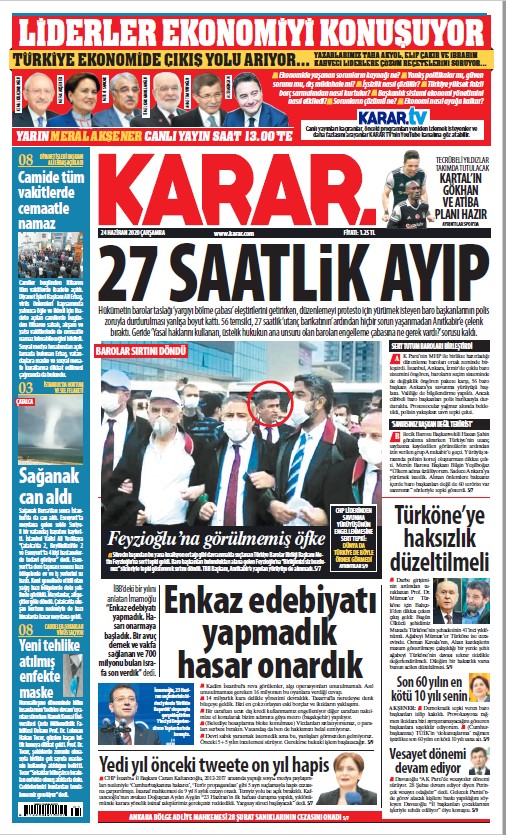 Ankara’da avukatların polis tarafından darp edildiği sırada Türkiye Barolar Birliği (TBB) Başkanı Metin Feyziyoğlu’nun Anıtkabir’den fotoğraf paylaşmasına tepki gösteren TBB İnsan Hakları Merkezi Genel Sekreteri Avukat Mustafa Kemal Karahan görevinden istifa etti. Ankara Barosu’na kayıtlı Karahan’ın verdiği istifa dilekçesinde, ‘’Türkiye’nin dört bir yanından hareket eden 56 Baro Başkanının, Baroları ve avukatlık mesleğini yok etme projesine karşı demokratik yürüyüşlerinin dahi bizzat birlik başkanı tarafından terörize edilmeye çalışılması ve baro başkanları polis tarafından darp edilirken Anıtkabir ziyaretinin fotoğraflarının paylaşılması çoktan taşmış olan bardağı deviren son hamle olmuştur’’ ifadeleri yer aldı. Baro başkanlarının protesto ettiği Türkiye Barolar Birliği (TBB) Başkanı Metin Feyzioğlu, canlı katıldığı bir programda “Neden destek vermek yerine Anıtkabir’e gittiniz” sorusuna, “Biz o yürüyüşe katılmak istemedik. O da bizim hakkımız” yanıtını verdi. Feyzioğlu, istifa çağrılarının hatırlatılması üzerine de “İstifa etmemi gerektiren herhangi bir durum yok. Benle ilgili değil. Ben kanun koyucu değilim” diyerek dedi.