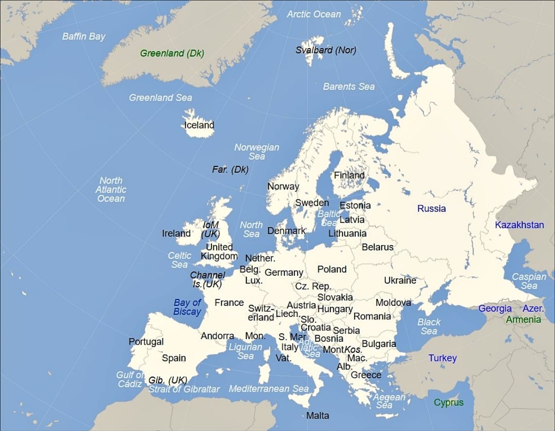 Coğrafi olarak Avrupa'nın doğu sınırı Rusya, Gürcistan, Azerbaycan ve Kazakistan'dan geçtiği için bu ülkelerin bir kısmı Avrupa kıtasında, bir kısmı da Asya kıtasında yer alıyor. Türkiye'nin de içinde yer aldığı bu beş ülke, Avrasya coğrafyasında yer almasından dolayı hem Avrupa hem de Asya ülkesi sayılmaktadır. Ermenistan ve Kıbrıs ise coğrafi olarak Avrupa kıtasında yer almamalarına karşın siyasi, ekonomik ve kültürel bağlarından dolayı Avrupa ülkeleri içerisinde yer almaktadır. Avrupa'da düzenlenen bazı sportif ve kültürel organizasyonlarda yer alan İsrail ise Avrupa ülkesi olmayıp tamamen Asya ülkesidir. Kıta Avrupasında düzenlenen organizasyonlarda yer almasının nedeni ise tamamen siyasidir.