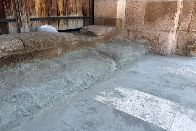 Kervansaray girişindeki merdivenler granit mermerle kaplanıp, yığma olan taş duvar bölümü ise kum ve çimentoyla sıvandı.