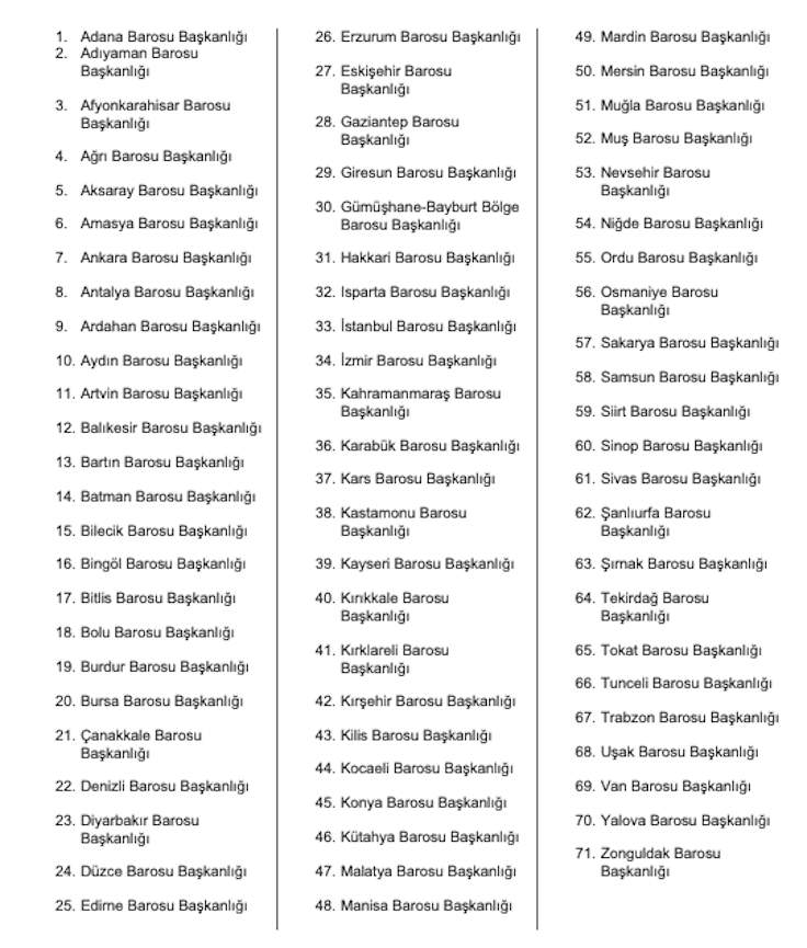 Tüm bu yaşananlar sonucunda; emniyet teşkilatı içinde Anayasamızda belirtilen ve Devletimizln temel nitelikleri arasında yer alan hukuk devleti kavramına bağlılıktan çok, polis devleti gibi bir fiili oluşuma ve bunun getirdiği ‘Ben yaptım oldu’ anlayışına yönelindiğini bir kez daha müşahade etmiş olduk. Baro başkanları olarak bizler, yılmadan ve usanmadan polis devletinde değil, hukuk devletinde yaşadığımızı ve yapılan tüm hukuksuzlukların karşısında olduğumuzu bugüne kadar haykırdık ve haykırmaya da devam edeceğiz.