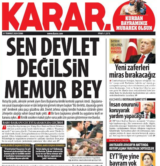 Genel bir uygulamanın mevcudiyeti halinde ise bu işleme dayanak bir karar bulunması şarttır. Video görüntülerinde sabit olduğu üzere, başkanımız da ısrarla ve sabırla polis memurlarına bu yasal dayanağı görmek istediğini belirtmektedir. Kolluk görevlileri ise kararı göstermek yerine; kendilerini devlet memuru değil de "devletin ta kendisi" olarak gördüklerini beyan ederek başkanımızı gözaltına almışlardır. Gözaltı işlemi sonrasında serbest bırakılan Hatay Baro Başkanımız, hukuksuz durdurma, kimlik sorma ve gözaltı işlemi yapan memurlar hakkında şikayette bulunmuş olup, soruşturma süreci tüm baro başkanlarımızca titizlikle takip edilecektir. Ne vahimdir ki, Hatay Emniyet Müdürü’nce başkanımıza geçmiş olsun denileceği yerde "Ne vardı, kimliğini gösterseydin" şeklinde serzenişte bulunulmuştur.