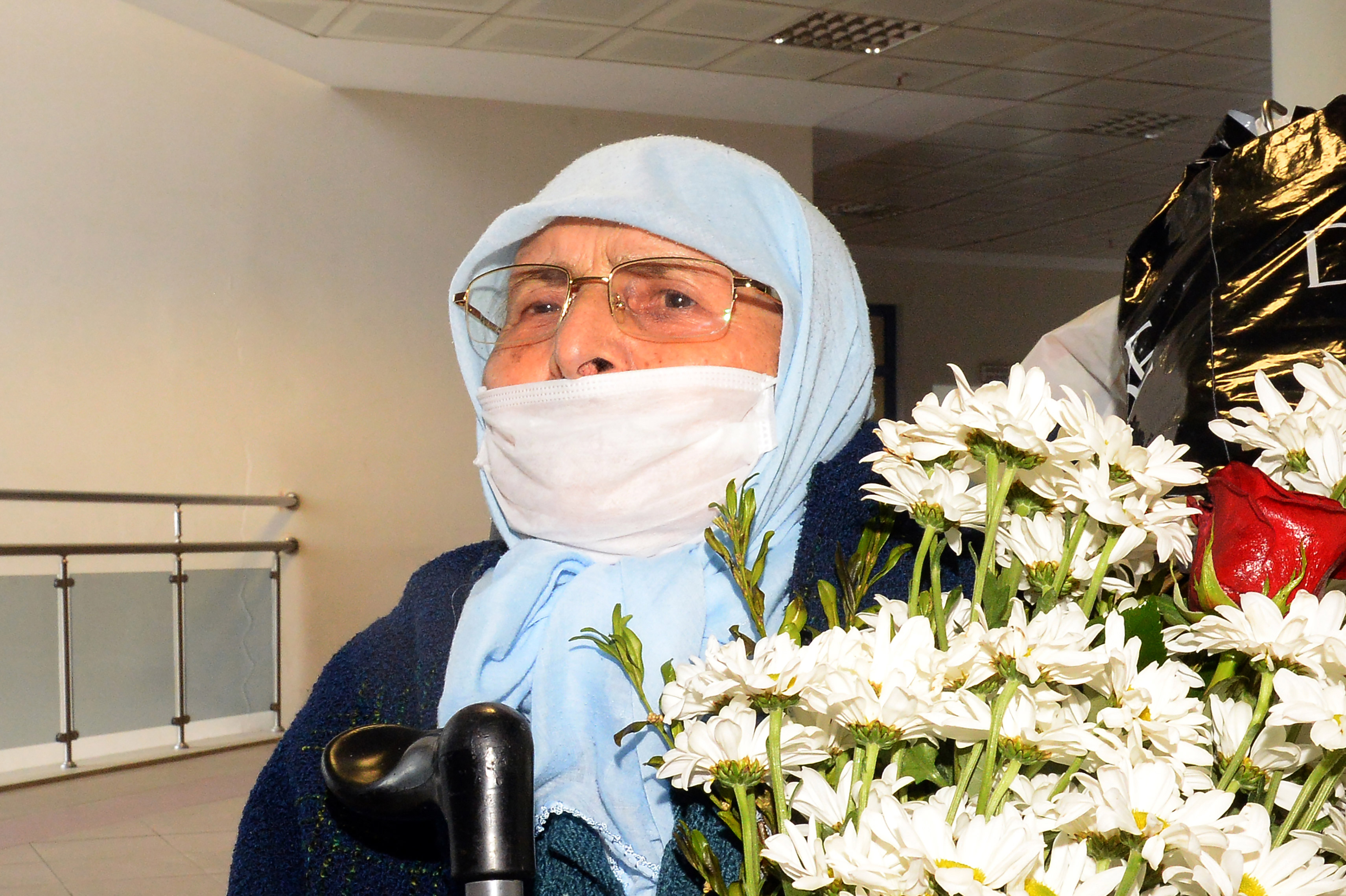 Hastanede görevli doktor ve hemşirelerin alkışları eşliğinde uğurlanan Sürgün'e, başhekim Raşit İlhan çiçek verip, sağlıklı kalması için tavsiyelerde bulundu.