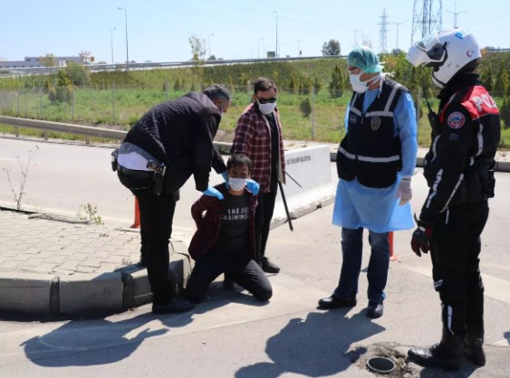 H.B., Adana Şehir Hastanesi otoban çıkışının yanına geldiğinde burada önünü kesen polis ekiplerine rağmen cam parçasını boynunda tutup direnmeye devam etti.