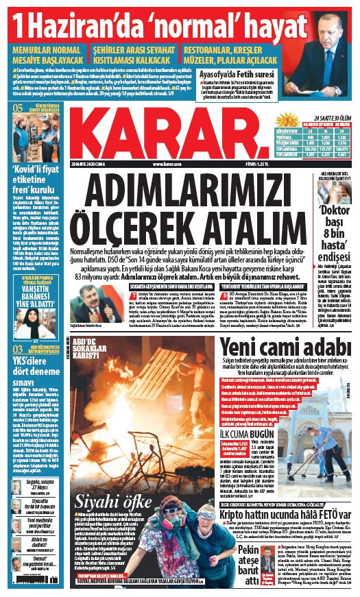 Normalleşme adımlarının hayata geçtiği, kısıtlamaların esnetildiği süreçte Sağlık Bakanı Fahrettin Koca’dan uyarı geldi. Riskin devam ettiğini kaydeden Koca, sokağa çıkma yasağı sonrası şehirlerde tedbirlere tam olarak uyulmadığını belirtti. Yazılı açıklama yapan Koca, önceki gece sokağa çıkma kısıtlamasının kalktığını ifade ederek şöyle devam etti: “Bu uygulama, şu an için 15-20 yaş grubu gençlerimizi, 65 yaş ve üstü büyüklerimizi, 14 yaş ve altı çocuklarımızı içeremiyor. Kısa bir zaman içinde bu yaş gruplarıyla ilgili yeni bir düzenleme yapılacak ve kamuoyuyla paylaşılacak. Gündemde olan birçok seçenek va---------------------------------------------------r. Ruh hallerini anlıyoruz. Bu yaş gruplarından ricamız, biraz daha sabırlı olmaları, bize biraz daha zaman tanımalarıdır.” Koca, dünyanın virüsle mücadelede beş ayı geride bıraktığına dikkat çekerek “Pek çok ülkede durum ciddiyetini koruyor. Bizim başarımız, toplumun her katmanının mücadeleye katılımından, tedbirde sağlanan birliktelikten kaynaklanıyor. Bunun aynı şekilde devam edeceğini, yeni fedakârlıklar gerektirecek şartların oluşmayacağını ümit ediyoruz. Yüksek bir ihtimal olmasa da eğer risk şartları tekrar oluşacak olursa, yapılacak şey konusunda deneyimliyiz. Fakat buna izin vermemek elimizdedir. Riski, tek dalgada önlemek mümkündür. İkinci dalga olasılığına karşı gücümüz, uygulayacağımız tedbirlerdir” ifadelerini kullandı.