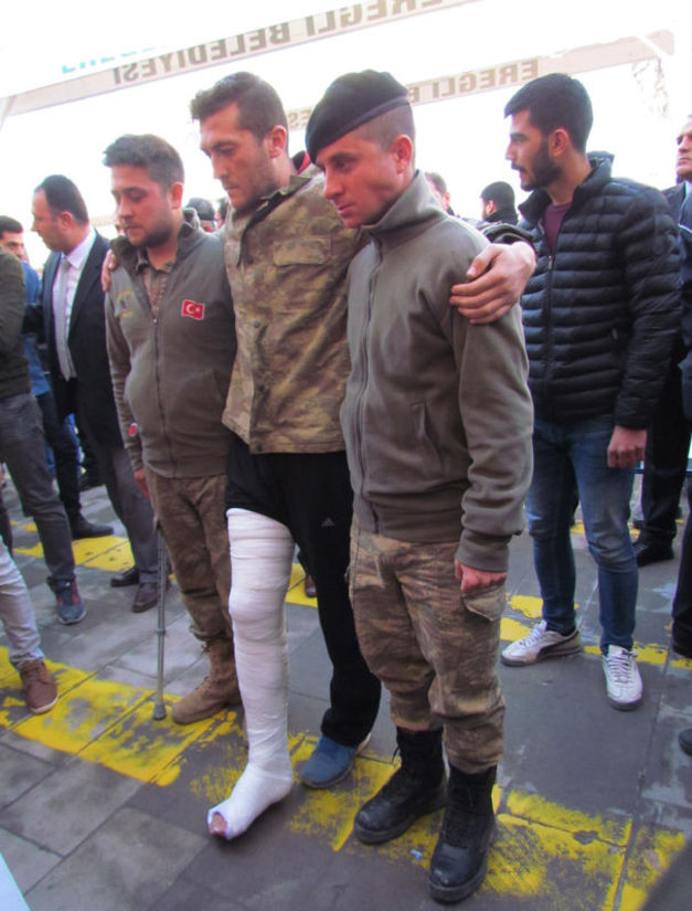 Afrin'de gazi olan Serkan Köroğlu, harekatta şehit olan Uzman Çavuş Nurullah Seçen'in cenazesine katılmıştı...