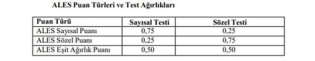 Bu standart puanlar kullanılarak her aday için sayısal ağırlıklı, sözel ağırlıklı ve eşit ağırlıklı olmak üzere 3 ağırlıklı puan (AP) hesaplanmaktadır.