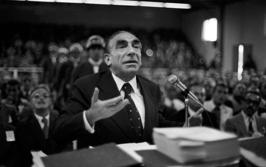 Türkeş, 26 Mayıs 1978 yılında partisinin Erzurum’da gerçekleştirdiği “Komunizme ve Bölücülüğe karşı Milli Birlik ve Beraberlik” Mitinginde konuştu. Foto: AA