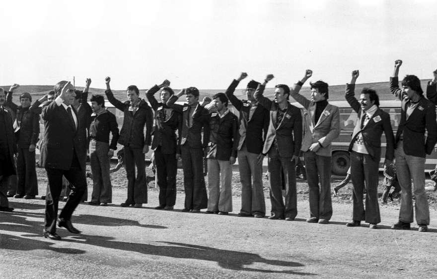 MHP Genel Başkanı Alparslan Türkeş, 15 Nisan 1979 yılında miting için gittiği Yozgat’ın girişinde ülkücüler tarafından karşılandı. Foto: AA