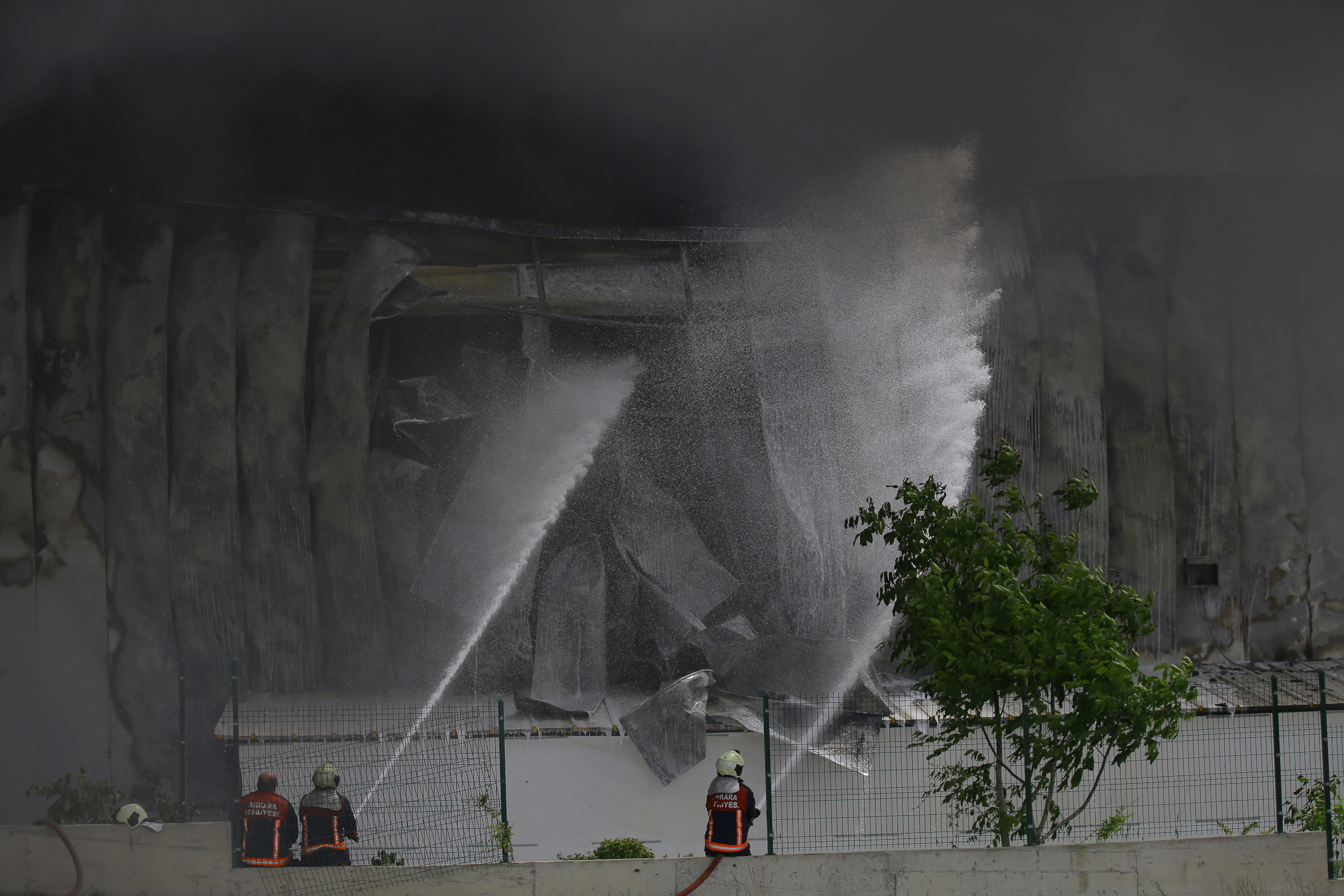 İtfaiyenin çabalarıyla kısmen kontrol altına alınan yangını söndürme çalışmaları devam ediyor.