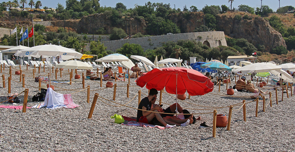 Antalya'nın dünyaca ünlü Konyaaltı Plajı’nda hizmet veren Büyükşehir Belediyesi EKDAĞ Konyaaltı Plajı Sosyal Tesisi, sıcak yaz günlerinde tatilcilerin akınına uğruyor. Normalleşme dönemiyle birlikte tesiste, şezlong ve şemsiyelerden, yürüyüş yolları ve soyunma kabinlerine kadar birçok uygulama hijyen ve sosyal mesafe kuralına uygun düzenlendi. Halk sağlığı için baştan sona tedbir amaçlı uygulamalar hayata geçirildi.