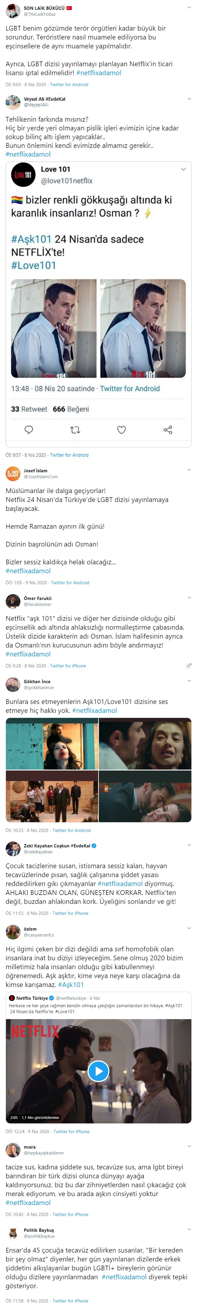 İlk bölümü 24 Nisan 2020 Cuma günü yayınlanan dizinin iptal edilmesini talep eden bazı sosyal medya kullanıcıları, tepki olarak Netflix üyeliklerini iptal ettiklerini dile getirirken, gösterilen tepkinin manasız olduğunu düşünen diğer sosyal medya kullanıcıları ise, çocukların ulaşmasının daha kolay olduğu televizyon ekranlarında onlarca kadına şiddet, silah, uyuşturucu, adam öldürme gibi toplum kurallarına aykırı sahnelere ses çıkarılmayıp kurgusal bir eşcinsel karaktere tepki gösterilmesine karşı çıkmışlardı.