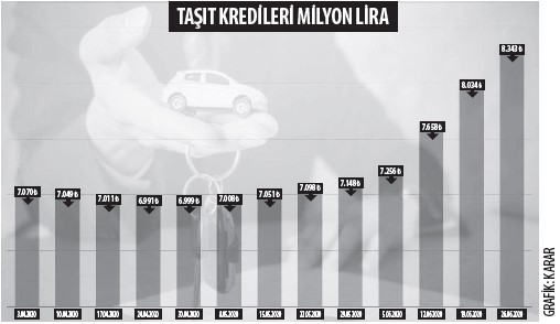 Koronavirüs ile birlikte üretime ve satışlara kısa bir ara veren otomotiv sektörü, yeniden gaza bastı. Otomotiv Distribütörleri Derneği (ODD) verilerine göre, haziran ayı otomobil ve hafif ticari araç pazarı, geçen yılın aynı dönemine göre yüzde 66,3 artarak, 70 bin 973 adede ulaştı. Satışlardaki bu hızlı yükselişte, geçen ay devreye giren düşük faizli kredilerin büyük etkisi olduğu görüldü. Bankacılık Düzenleme ve Denetleme Kurumu (BDDK) verilerine göre, bireysel taşıt kredilerinin patlama yaptığı görülüyor. Deyim yerindeyse vatandaş yeni bir araç alabilmek için krediye koştu. BDDK verileri nisan ayında bireyse taşıt kredilerinin 7 milyar lirayı aştığını gösterirken, aynı ay 6 milyar lira seviyesine gerileme olsa da mayıs ayında yeniden hareketlenme kayıtlara geçti. Pandemi etkisinin hafiflemesiyle birlikte ayağını yerden kesmek isteyen tüketici, yönünü yeniden krediye çevirmiş. Mayıs ayının ilk haftasından itibaren taşıt kredisi grafikte de görüldüğü gibi hızlı bir yükseliş sarmalına girdi. Mayıs ayında yeniden 7 milyar lirayı aşan krediler, haziran ayında 8 milyar liraya ulaştı. BDDK’nın en son verisine göre, 26 Haziran haftasında bireysel taşıt kredilerinin 8.3 milyar liraya ulaştığı görülüyor.
