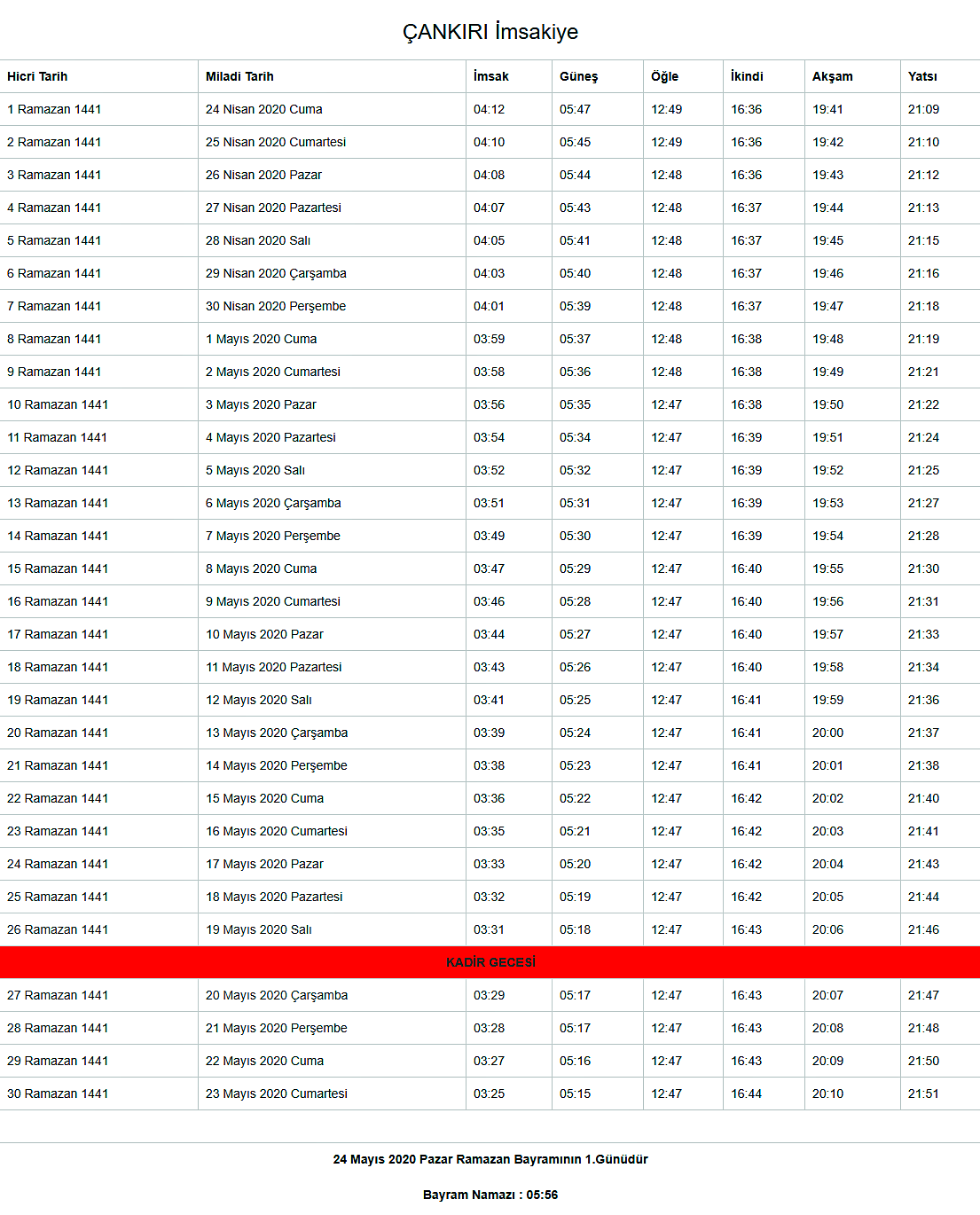 Tüm 'Çankırı sahur ve iftar vakitlerini' gün gün NAMAZ VAKİTLERİ sayfamızdan öğrenebilir, RAMAZAN sayfamızdan ise bu aya özel haber, röportaj ve bilgilere ulaşabilirsiniz...