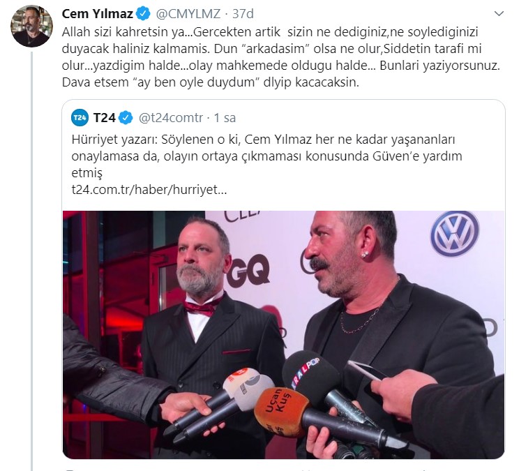 "Cem Yılmaz, Ozan Güven konusunda sessizliğini bozup 'Kadına şiddet konusunun tarafı olmak diye bir duruşunun söz konusu olmadığını' söyledi. Sonuçta herkes ondan bir açıklama bekliyordu. İki yakın arkadaş, ama her ikisi de ünlü. Dolayısıyla insanların bir açıklama beklemeleri doğaldı. Bunda anormal bir durum yoktu. Yılmaz’ın açıklaması ise doyurucu. Bir yandan zor bir durum aslında.