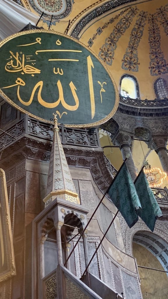 Osmanlı “Fetih" geleneğinde fethin sembolü olarak caminin minberine iki yeşil sancak asılır ve minberin sağ tarafına 3 Hilalli kılıç konulurdu.