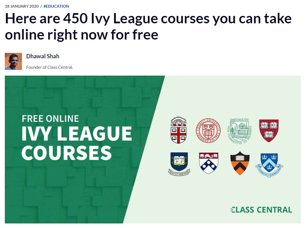 * Dünyanın en iyi üniversitelerinin bir çoğunun bulunduğu Ivy League hocalarının hazırladığı 450 adet online kurs şu an ücretsiz olarak herkesin kullanımına açık. Buraya tıklayarak ulaşabilirsiniz.