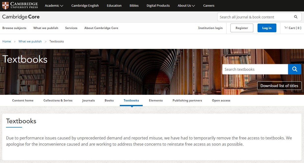 * Yine dünyanın en iyi üniversiteleri arasında bulunan Cambridge de basılmış 700’den fazla ders kitabını Mayıs sonuna kadar online - ücretsiz erişime açtı. Buraya tıklayarak ulaşabilirsiniz.