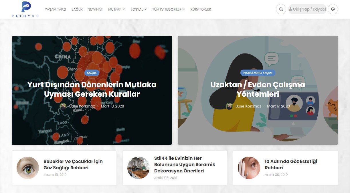 * Yazılımcı, tasarımcı, küratör, iş geliştirmeci, mühendis, pazarlamacılardan oluşan bir ekibin hayata geçirdiği Pathyou; 'öğrenme yolculuğunun en yalın hali' olarak tanımlanabilir. Yabancı olduğunuz bir konuyu yolculuk halinde öğrenebileceğiniz bir sosyal öğrenme platformu olan Pathyou.com'u ücretsiz kullanmak için üye olabilir, ilgi alanınızdaki konularda öğrenme yolculuklarına çıkabilir, online zamanı faydaya dönüştürebilir, küratör olabilir, takip edebilirsiniz. Buraya tıklayarak ulaşabilirsiniz.