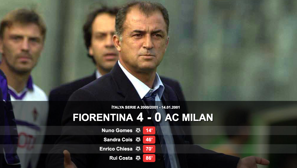 Terim'in Fiorentina'sı ligde iyi bir performans gösteremedi. 13 Ocak 2001'de AC Milan'ı 4-0 yendikten sonra Fiorentina, uzun bir süre galibiyet yüzü göremedi. Öte yandan takım Coppa Italia'da ise başarılı bir performans sergiledi. Yarı finalde Milan'ı 2-2 ve 2-0'lık skorlarla geçerek takımını finale taşıdı. Bu dönemde Terim'in özellikle Milan ve Internazionale gibi takımlara karşı aldığı başarılar dikkat çekti ve Terim'in adı başarısız bir sezon geçirmekte olan ve teknik direktör değişiklikleri yaşayan AC Milan ile anılmaya başlandı.