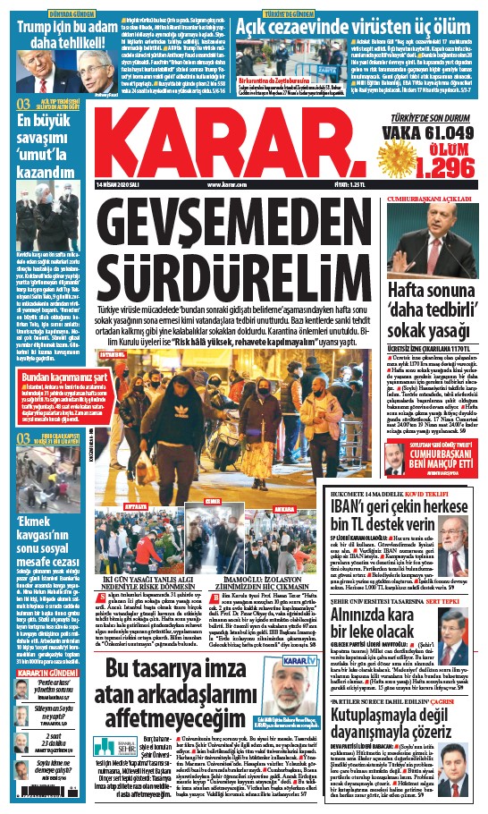 İstanbul Büyükşehir Belediye (İBB) Başkanı Ekrem İmamoğlu, geçen cuma gecesi, 22.00 sıralarında ilan edilen ve sokaklarda yoğun yığılmalara neden olan 2 günlük sokağa çıkma yasağının ardından açıklamalarda bulundu. İmamoğlu şunları söyledi: “Sokağa çıkma ile süreci, evlerimizde geçirdik. İzolasyon çok önemli. Herhangi bir gündem zihnimizi başka bir yere dönüştürmeden, tümüyle evde kalmayı, evde izole olmayı bu dönemin en önemli kararı olarak zihnimizden çıkartmayalım. Zira şu anda canı pahasına hayatını riske ederek, sağlıkçılarımıza yardımcı olmak istiyorsak, lütfen evde kalın. Bu hafta önemli. Bundan sonraki birkaç hafta çok çok önemli. Dünyadaki seyrine baktığımızda, bu süreç böyle. Bu konuda, Bilim Kurulu ve Sağlık Bakanlığı’nın açıklamaları da böyle. Dolayısıyla evde kalmaya devam edin. Herkes vazifesini yapmaya çalışıyor. Mecbur kalmadıkça dışarı çıkmayın, toplu ulaşımı kullanmayın, özel araçlarınızla da çıkmayın. Lütfen ama lütfen, kendinizi bu hatayla buluşturtmayın; evde kalın.”