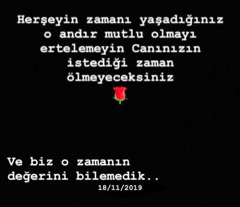 Paylaşımda, "Her şeyin zamanı yaşadığınız o andır. Mutlu olmayı ertelemeyin, canınızın istediği zaman ölmeyeceksiniz. Ve biz o zamanın değerini bilemedik. 18/11/2019 saat 13:47 bitti" notunu düştü.