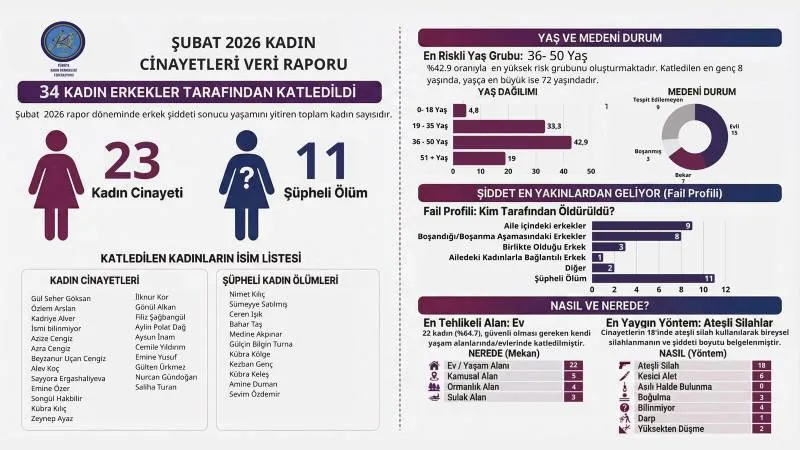 1-28 Şubat tarihleri arasında toplam 34 kadın yaşamını yitirdi. Federasyon, bu vakaların 23’ünü doğrudan "kadın cinayeti" olarak tanımlarken, 11 ölümün üzerindeki sis perdesinin henüz aralanmadığını ve kayıtlara "şüpheli" olarak geçtiğini belirtti.