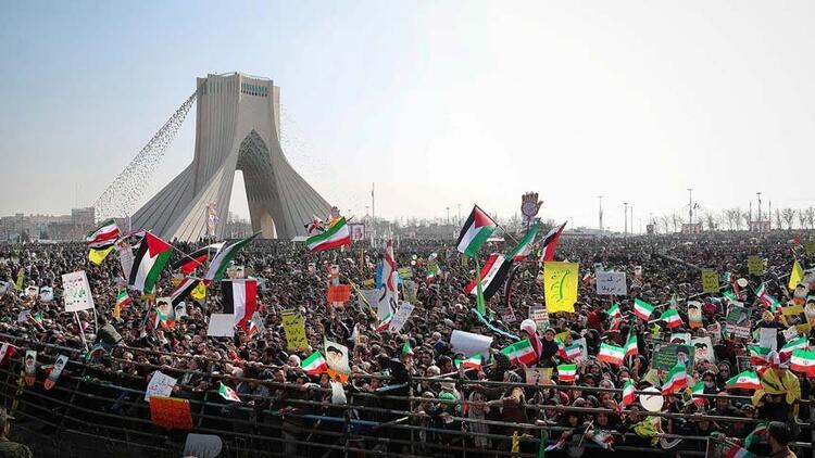 Devrimin 39'uncu yılı halk tarafından kutlanırken, Tahran'da bulunan Azadi meydanında toplanan İran halkı, ellerinde taşıdıkları İran bayrakları ile slogan attı.
