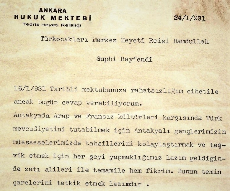Arap-Fransız cemiyetlerin hızlanan Türk aleyhtarı faaliyetleri, Antakya için ciddi bir tehditti. Bunun farkında olan Türkiye, Antakyalı Türk gençleri Ankara’ya getirerek okutmayı planladı. İyi hukuk bilen gençler yetiştirilmeli ve memleketlerine geri gönderilmeliydi... Böylelikle yıllar sonra kurulacak Hatay devleti, yapılacak seçimler ve refarandumlar için donanımlı bir kadro hazır olacaktı...