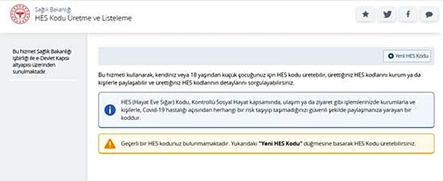 'Hayat Eve Sığar' baş harflerinden oluşan 'HES' kodunu e-Devlet sisteminden almak da mümkün. İnternetten e-Devlet'e portalına girmek için www.turkiye.gov.tr/saglik-bakanligi-hes-kodu-uretme-ve-listeleme adresine giriş yapabilirsiniz. Bu sayfa üzerinden kendiniz veya 18 yaşından küçük çocuğunuz için HES kodu için başvuruda bulunabilir, aldığınız HES kodlarını kurum ya da kişilerle paylaşabilir ve HES kodlarının detaylarını sorgulayabilirsiniz.