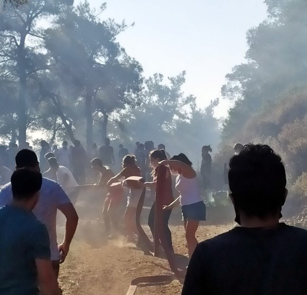 Heybeliada halkı, ormanlık alanda çıkan yangına müdahale eden itfaiye erlerine yardım etmek üzere bölgeye gitti.
