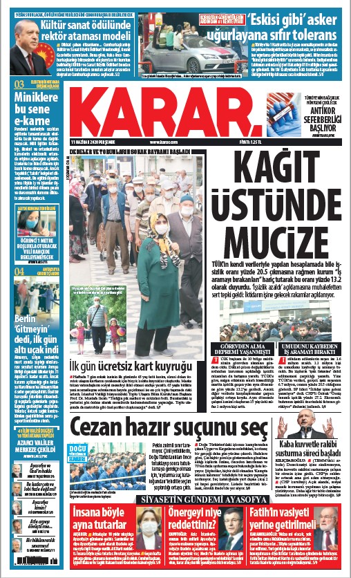 istihdam bir milyon 700 bin kişi azalmış. Yine TÜİK’in aynı raporunda işsiz sayısı 573 bin azalmış. Anlamaya çalıştığım şu: Hem işe yerleştirme hem işsiz sayısı aynı anda nasıl azalıyor?” dedi. Analist Mustafa Sönmez “TÜİK’e göre işsiz sayısı 2020 yılı Mart döneminde geçen yılın aynı dönemine göre 573 bin kişi azaldı ve 3 milyon 971 bin kişi oldu. İşsizlik oranı 0,9 puanlık azalış ile yüzde 13,2 seviyesinde gerçekleşti. Harçlıklı işsiz 4 milyon kişi işsiz sayılmadı” açıklamasını yaptı.