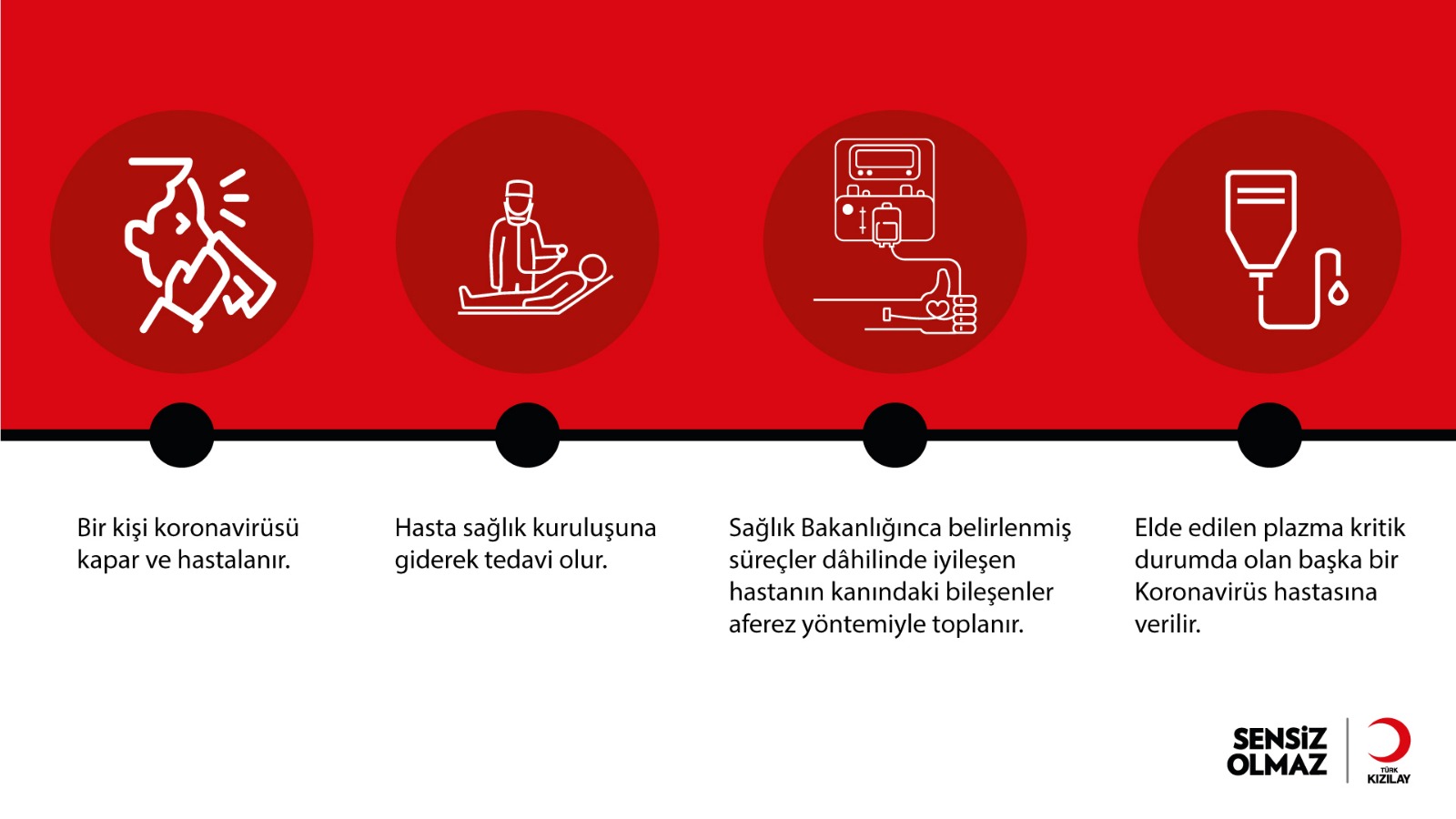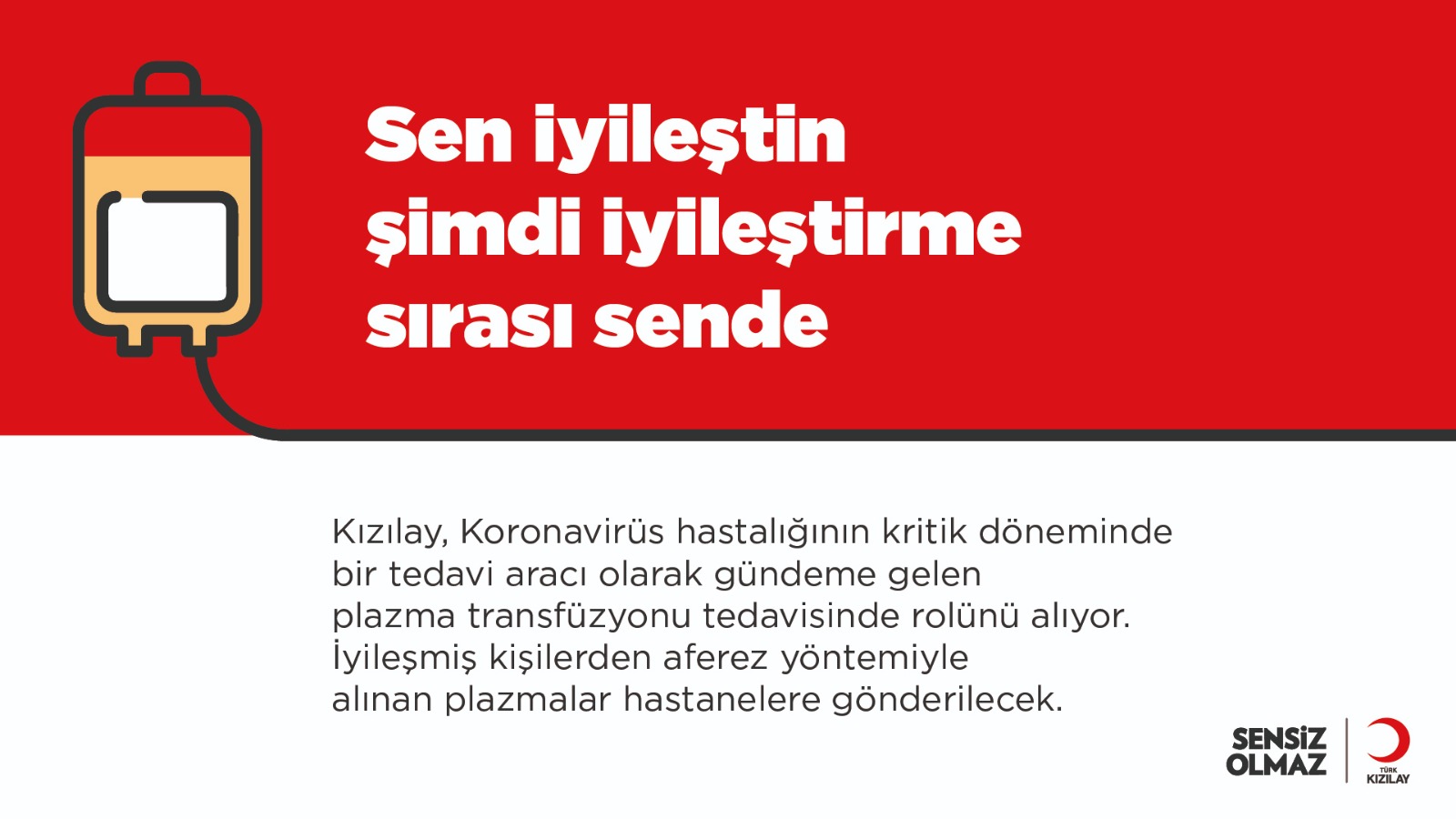Koronavirüs (Kovid-19) pandemisiyle mücadelede iyileşmiş hastalardan alınan kan plazmasıyla kritik durumda bulunan hastalar tedavi edilecek. Kızılay tarafından toplanan ve hastalara ulaştırılan kan plazmaları, durumu ağır olan vakaların tedavisinde kullanılacak.