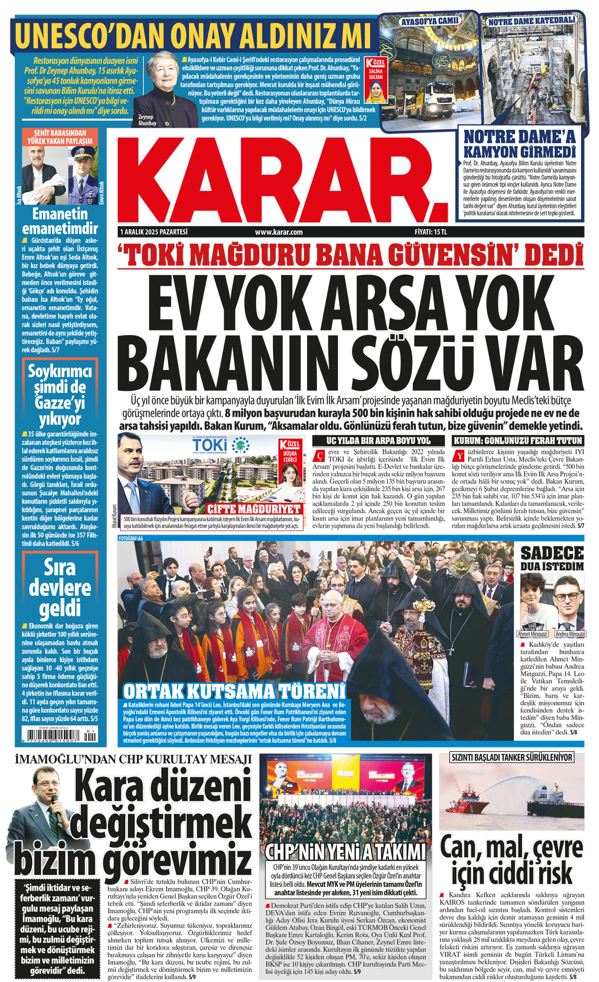01 Aralık 2025 Pazartesi