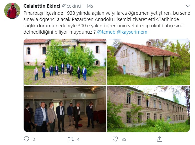 Milli Eğitim Bakanlığı tarafından bu yıl 'Proje Okul' ilan edilen tarihi eğitim yuvasını ziyaret eden Kayseri İl Milli Eğitim Müdürü Celalettin Ekinci, sosyal medya hesabından yaptığı paylaşımda, "Pınarbaşı ilçesinde 1938 yılında açılan ve yıllarca öğretmen yetiştiren, bu sene sınavla öğrenci alacak Pazarören Anadolu Lisemizi ziyaret ettik. Tarihinde sağlık durumu nedeniyle 300'e yakın öğrencinin vefat edip, okul bahçesine defnedildiğini biliyor muydunuz?" ifadelerini kullandı.