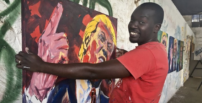 Üzerine yıllarca çalıştığı ve bin Dolar’a satışa sunduğu Barrack Obama tablolarıyla bir anda ünlenen Kenyalı ressam Evans Yegon şimdi Amerika Bileşik Devletleri’nin yeni başkanı Başkanı Donald Trump’ı eserlerine taşıyor. Ancak, Kenyalılar Trump'ın tablolarına ilgi göstermeyince sanatçının çalışmaları elinde kaldı.
