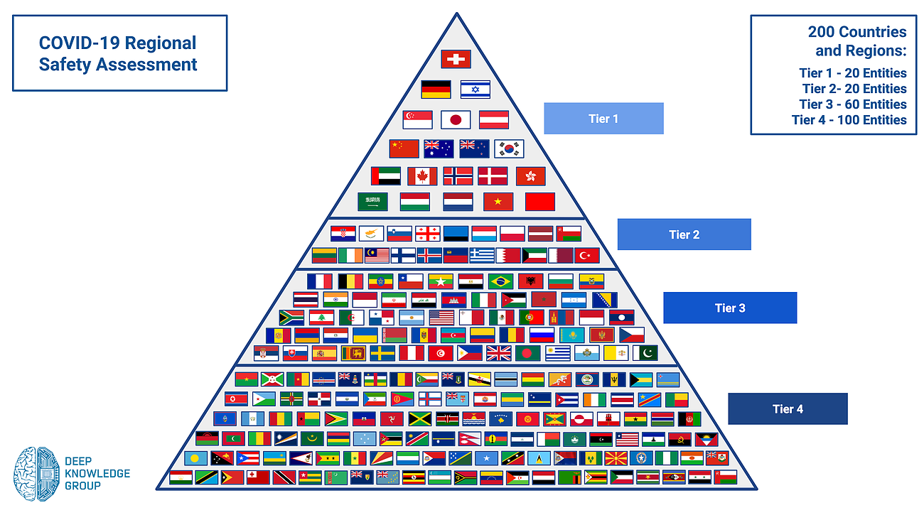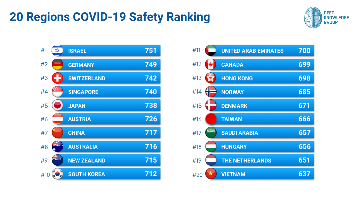 Sivil toplum kuruluşları ile birlikte ticari işletme ve şirketlerin dahil olduğu ve yapay zeka, yatırım teknolojileri, finans teknolojileri ve ilaç sektörü alanında çalışmalarını sürdüren Deep Knowledge Group, farklı parametreler ve veriler aracılığıyla 'koronavirüste en güvenli ülkeler' listesi hazırladı.