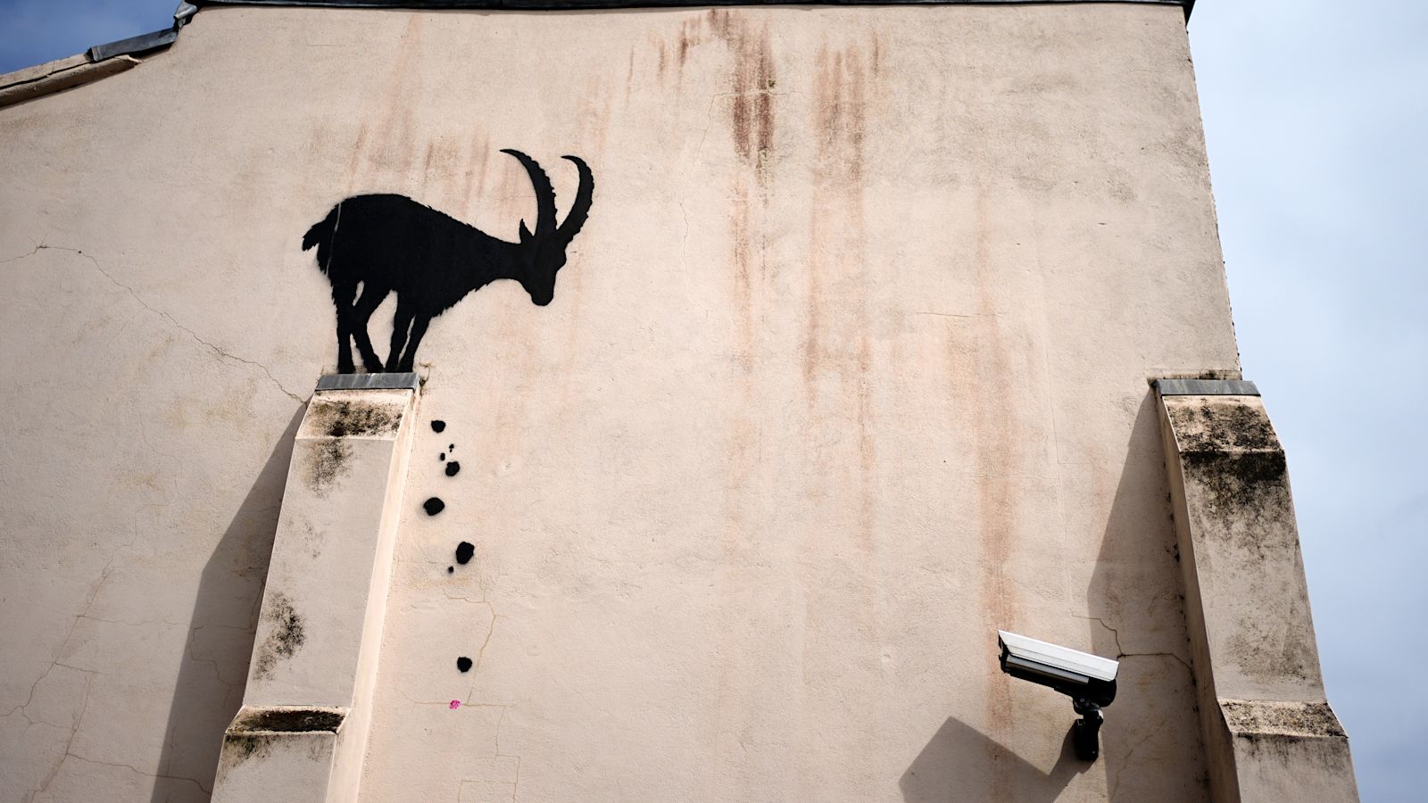 Sanatçı yeni çalışmasında, duvarın üzerindeki çıkıntıya tünemiş bir keçiyi tasvir ediyor. Duvar resminde, hayvanın tehlikeli konumunu belirtmek için ise keçinin durduğu çıkıntının altında yuvarlanan kaya parçaları görülüyor. Sanatçının eserini resmettiği duvarda ayrıca keçiye doğrultulmuş gerçek bir güvenlik kamerası dikkati çekiyor.