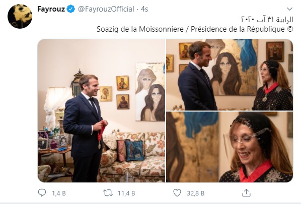 Havalimanından Arap dünyasının divası olarak nitelendirilen Lübnanlı sanatçı Feyruz'un evine geçen Macron, burada bir grup göstericinin protestosuyla karşılaştı.
