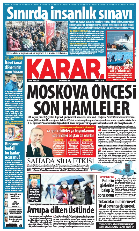 İdlib’te 34 şehidin ateşiyle şiddetlenen savaş rüzgarlarının tonunu düşürmek için diplomatik manevralar hız kazandı. Cumhurbaşkanı Erdoğan ile Rusya lideri Putin’in yarınki Moskova zirvesi öncesinde Ankara, ABD’den iki kritik ismi ağırlıyor. Putin’in 20 Şubat tarihli ‘savaş istemiyoruz’ mesajlarını yeniden servise koyan Kremlin ise tansiyonu düşüren mesajlar verdi. Kremlin Sözcüsü Dmitriy Peskov, “Biz şu anda Putin ile Erdoğan arasındaki görüşmeye odaklanmış durumdayız” dedi. Peskov, “Moskova, Türk partnerlerle iş birliğine büyük önem veriyor” ifadelerini kullandı.