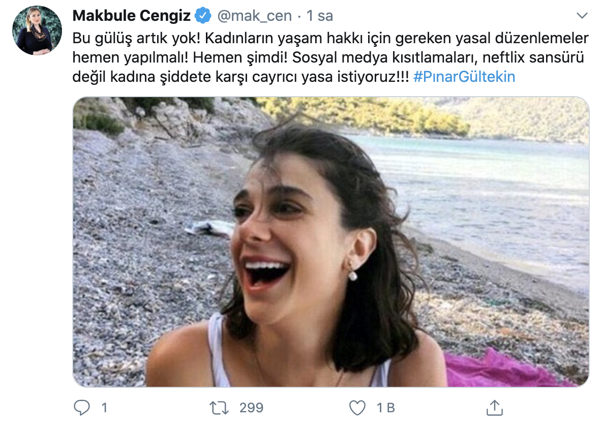 İşte Pınar Gültekin ile ilgili atılan tweetlerden bazıları: