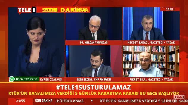 Tele 1 ekranın karartılmadan önce Evren Özalkuş'un moderatörlüğündek 'Türkiye'nin Gerçeği' programında Tele 1 Genel Yayın Yönetmeni Merdan Yanardağ, CHP Parti Meclisi üyesi Eren Erdem, Gazeteci- Yazar Fikret Bila ve Gazeteci- Yazar Necdet Saraç da RTÜK'ün kararını tartıştı.