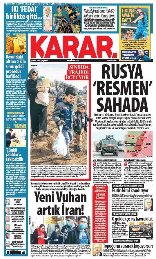 Rusya Dışişleri Bakanı Sergey Lavrov, “Avrupa’nın göçmen sorununu çözmek için terörle mücadeleye son veremeyiz” dedi. Lavrov, İdlib’deki sorunlarının çözümünün Rusya ile Türkiye liderleri arasında varılan anlaşmaların yerine getirilmesi ile mümkün olduğunu söyledi. Rusya’nın Suriye’deki Tarafları Uzlaştırma Merkezi, Türkiye ve Batılı ülkelerin Rusya ve Suriye yönetimine yönelttiği İdlib’de milyonlarca kişilik sığınmacı akımı oluştuğuna dair eleştirilerin gerçeği yansıtmadığını belirtti. Rusya Devlet Başkanı Vladimir Putin ve Almanya Başbakanı Angela Merkel’in telefon görüşmesi yaptığı belirtildi. İki lider de, Putin ve Cumhurbaşkanı Recep Tayyip Erdoğan’ın Moskova’da 5 Mart’ta yapacakları görüşmenin ‘belirleyici’ olacağını umduklarını belirtti.