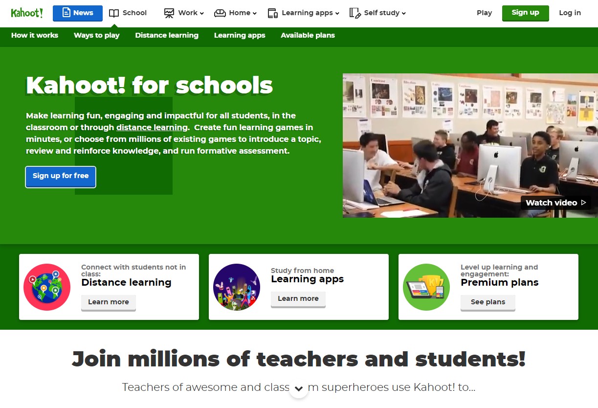 Kahoot öğretmenlerin öğrencilerine quizler ve anketler hazırlayabildiği bir uygulamadır. Öğretmenler bu uygulamada ücretsiz olarak quizlerini oluşturabilir, öğrenciler ise uygulama üzerinden quizin kodunu girerek soruları yanıtlayabilir.