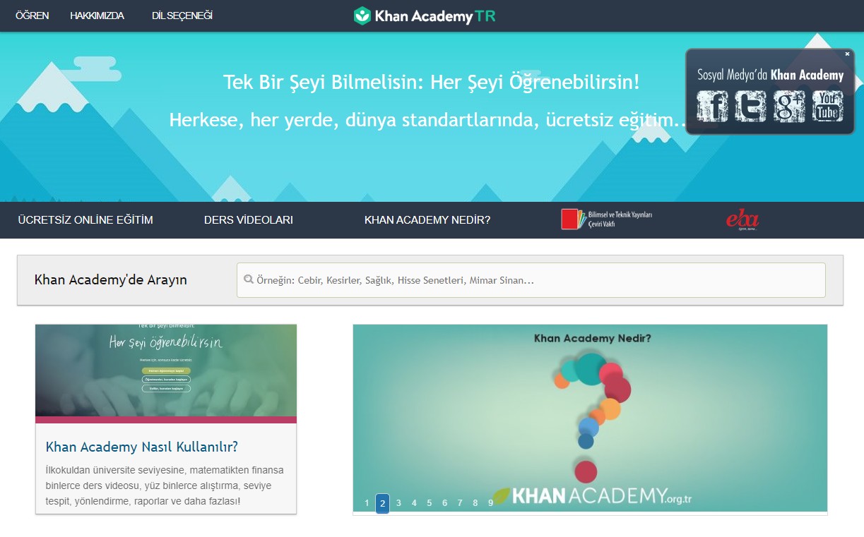 Khan Academy, 2006 yılında eğitimci Salman Khan tarafından "Herkese, her yerde, dünya standartlarında, bedelsiz eğitim." sloganıyla kurulmuş, kâr amacı gütmeyen bir eğitim kuruluşudur. Platform, internet üzerinden birçok farklı alan ve seviye için hazırlanan ders videoları, interaktif alıştırmalar ve testler ile bireysel öğrenme için oyunlaştırma mekanizmalarıyla desteklenen bir kütüphane ve aynı zamanda öğrencinin seviyesini tespit ederek yönlendirebilen, öğrenme verisini öğretmen ya da velilere raporlayabilen kişiselleştirilmiş bir eğitim aracı sunmaktadır.