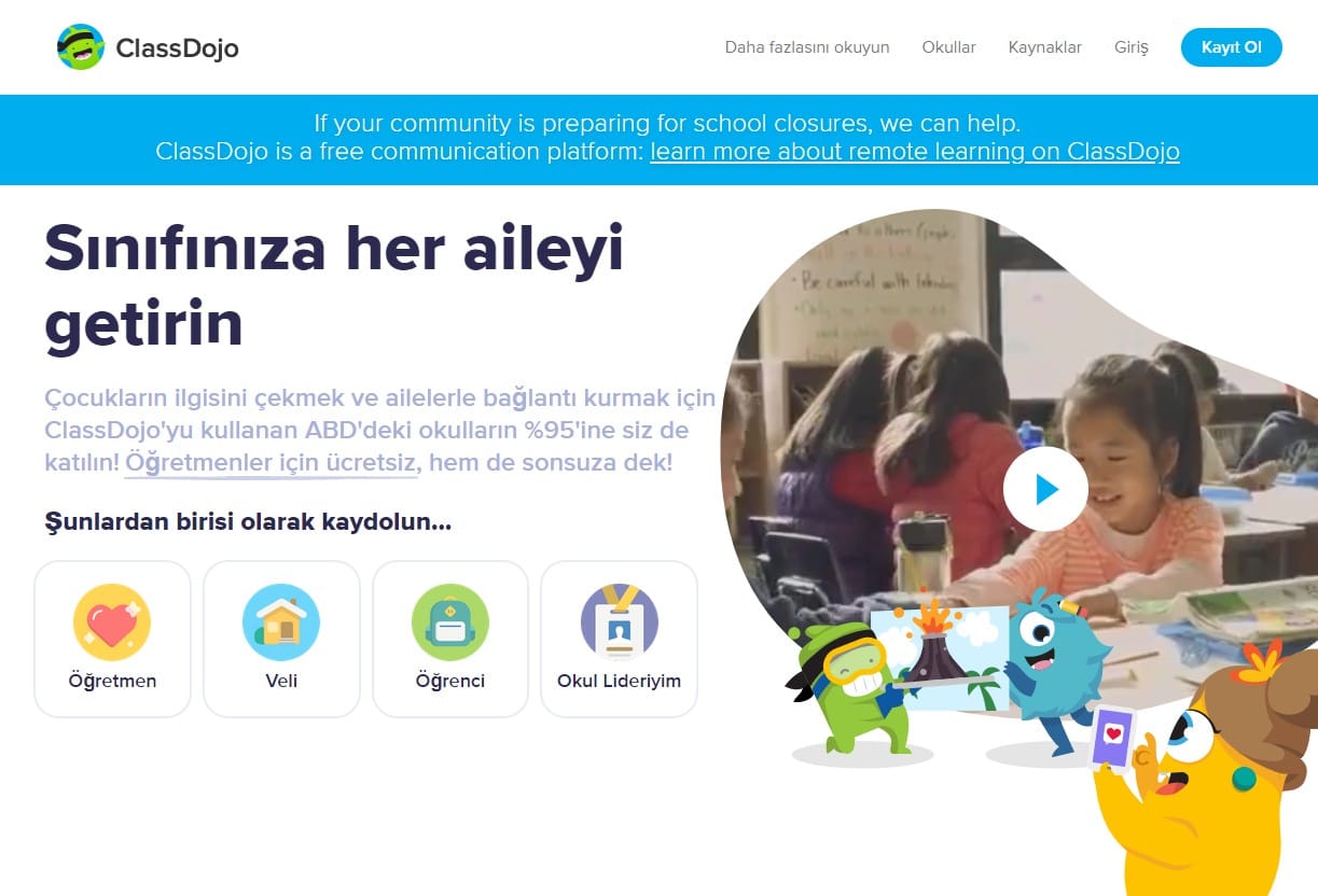 Classdojo bir sınıf içi etkileşim uygulamasıdır. Öğrenciler ve aileler arasındaki iletişimi sağlamak amacıyla kullanılır. Bir öğrencinin gün boyunca neler yaptığını ve neler yapması gerektiğini velisine kolay bir şekilde aktararak derslerin ve ödevlerin takibinin yapılmasını kolaylaştırır. Özellikle öğretmenler bu dönemde öğrenciyle birebir iletişimde olamayacağından işin büyük bir bölümü velilere düşecek. Bu uygulama ile veliler de bu süreci zorlanmadan atlatacaktır.