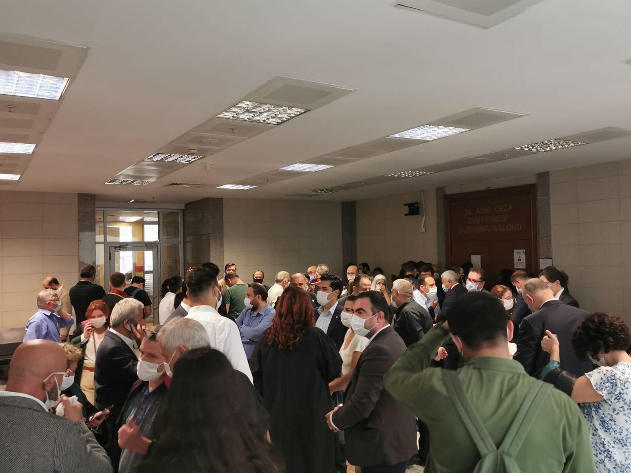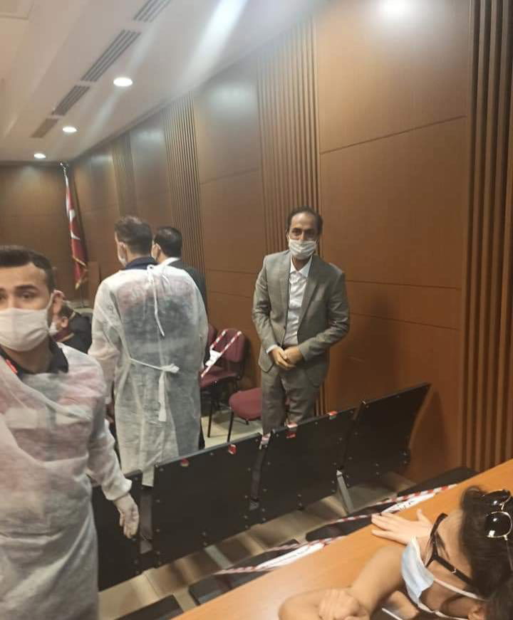 Duruşmaya katılımın fazla olması sebebiyle mahkeme başkanı koronavirüs önlemleri kapsamında salona sosyal mesafe kuralına uygun sayıda tutuklu sanık yakını ve gazetecinin alınmasına karar verdi.