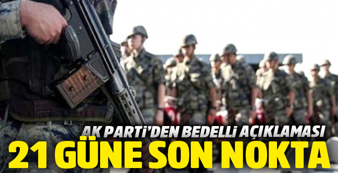 AK Parti İstanbul Milletvekili Şirin Ünal imzasıyla verilen ve kabul edilen önergeyle bedelli askerlikten yararlanmak için 28 gün temel askerlik eğitim şartı 21 güne indirildi.