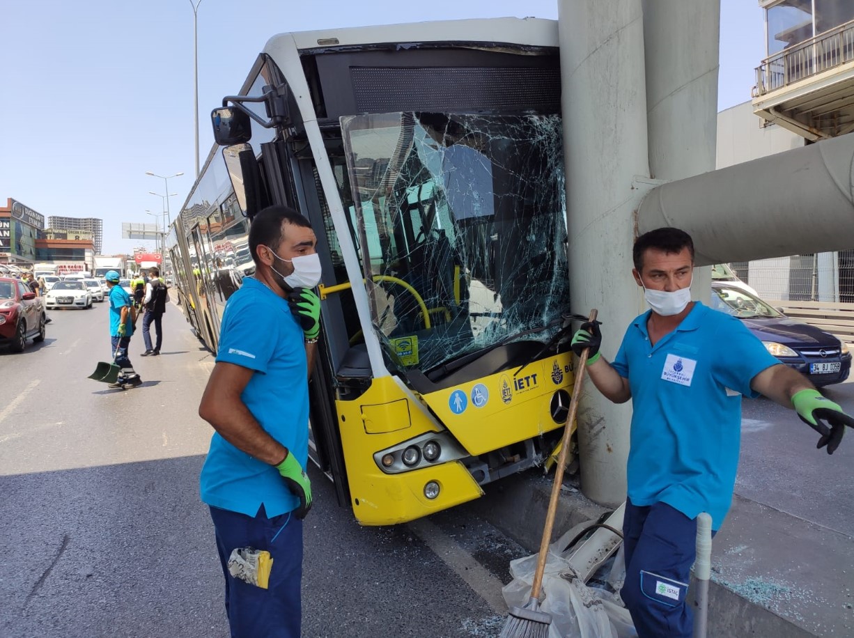 Edinilen bilgiye göre Avcılar yönüne giden İETT otobüsü, henüz bilinmeyen nedenle arızalandı. Sürücü otobüsü durdurarak arızayı tespit etmek istedi. Bu sırada hareket eden otobüs, Haramidere üst geçidinin ayağına çarparak durabildi.
